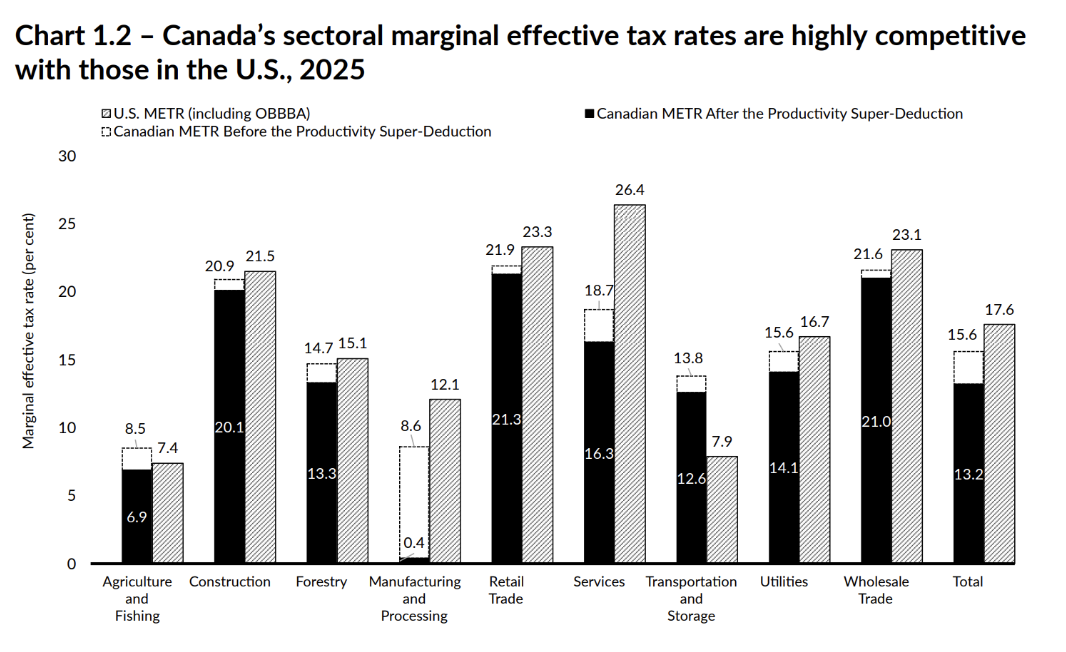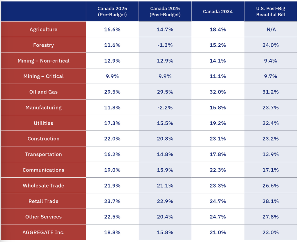 Figure 1: Sectoral METRs in budget 2025 as calculated by Jack Mintz.